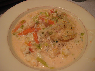 I was pretty certain that I had all the ingredients to make this delightful looking dish and so away I went, chopping and defrosting. So what if I misread Seafood Stock to say Chicken Stock! Who cares that I didn’t actually have any lobster meat laying around the house (don’t we all?!?) but instead just used shrimp and canned crab meat! It was still superb! And I promise you’ll love it!